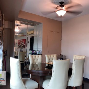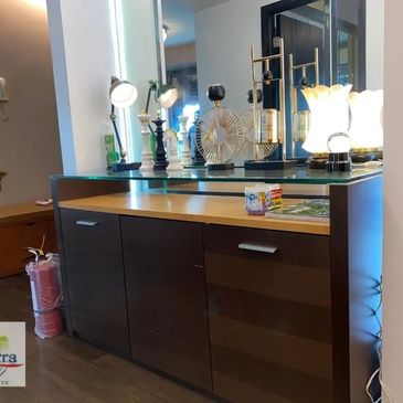 Step into an elegantly designed hallway that sets the tone for the luxurious living experience within this 2-bedroom condominium available for lease at The Residences At Greenbelt. This beautifully decorated space combines modern aesthetics with sophisticated details, creating a welcoming and