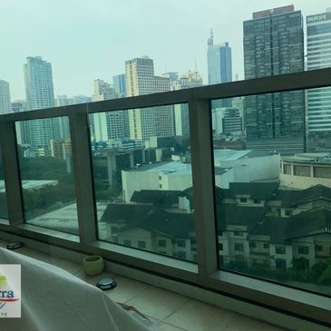 Experience breathtaking views and serene moments on the balcony of this luxurious 2-bedroom condominium available for lease at The Residences At Greenbelt. This spacious outdoor area offers a perfect blend of relaxation and panoramic cityscapes.