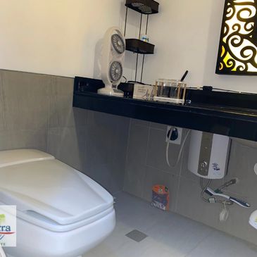 This bathroom is designed specifically for the maid, providing a private area that is separate from the main bathrooms used by the residents. This ensures comfort and privacy for everyone in the household.