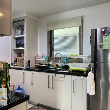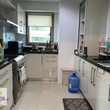 Welcome to a modern and fully furnished kitchen that combines functionality and style, part of a luxurious 2-bedroom condominium available for lease at The Residences At Greenbelt. This well-equipped kitchen is designed to cater to all your culinary needs, offering a perfect blend of convenience and elegance.