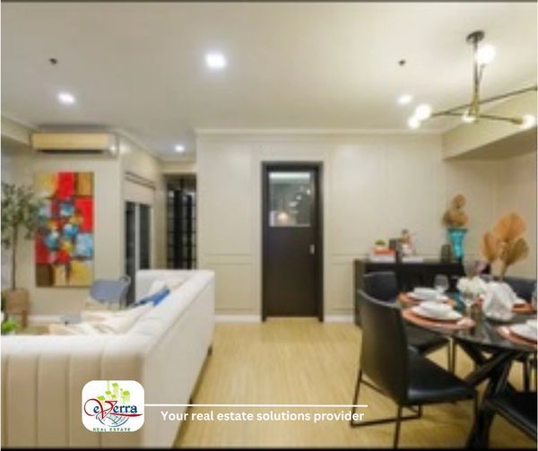 A different view of the open-plan living and dining area — where tasteful design meets everyday comfort. Soft lighting, clean lines, and refined finishes create a warm, inviting home atmosphere in the heart of BGC.